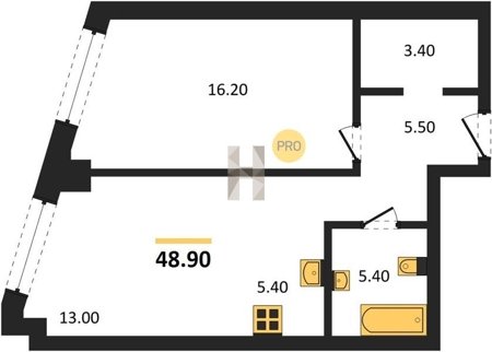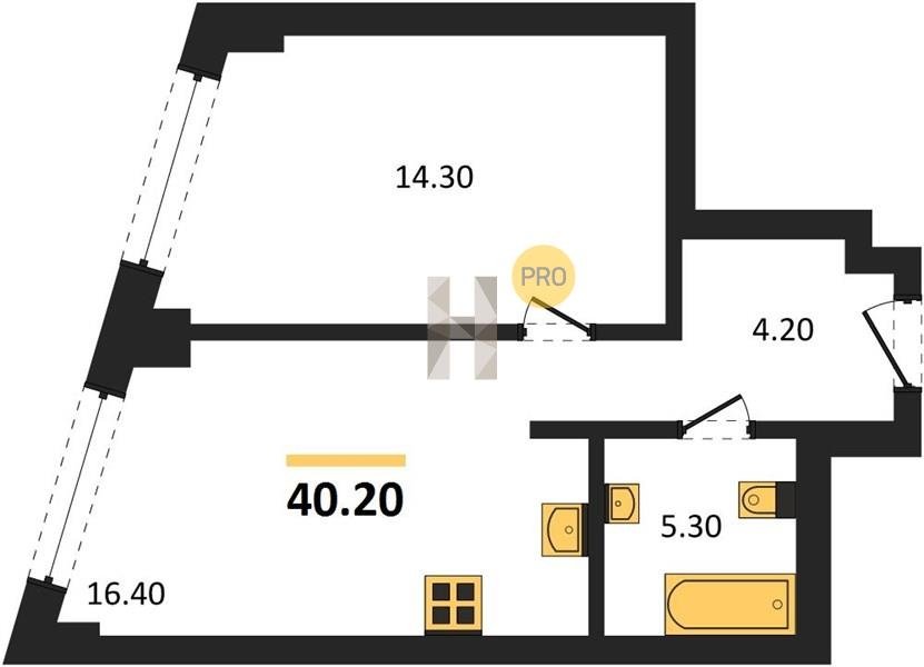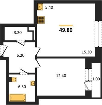 Площадь от 29.7 м2