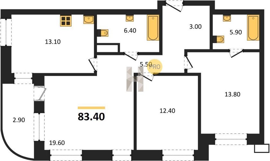Площадь от 83.2 м2