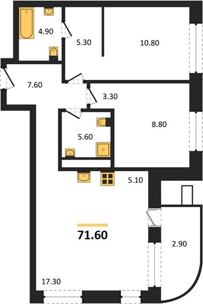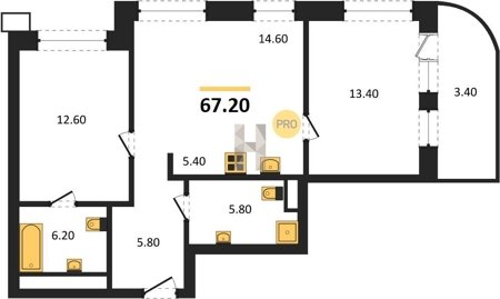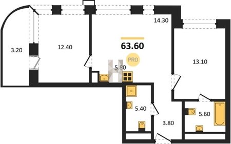 Площадь от 63.6 м2