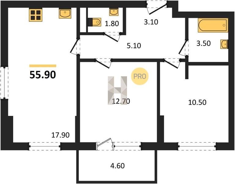 Благодаря технологии монолитного строительства, архитектурный проект предлагает большое количество планировочных решений для жизни – от компактных студий от 20 кв. м. до просторных 4-комнатных площадью более 100 кв. м. В проекте предусмотрены также планировки евроформата с возможностью полноценного деления на кухню и гостиную благодаря окнам и в зоне кухни, и в зоне гостиной.