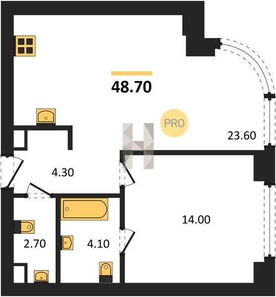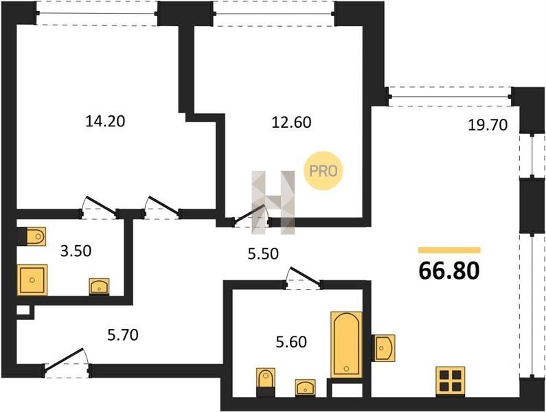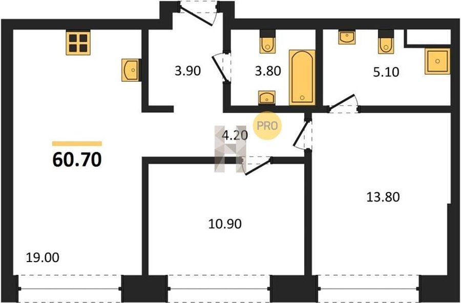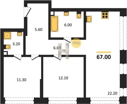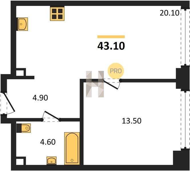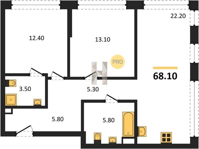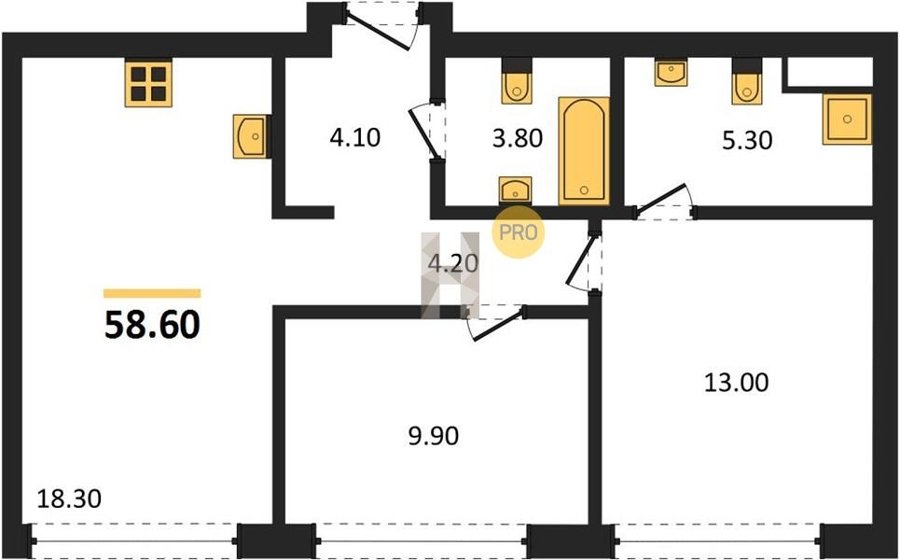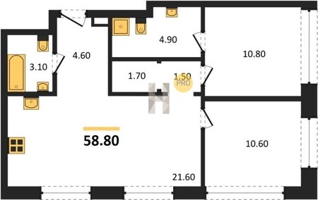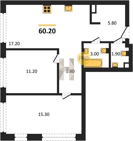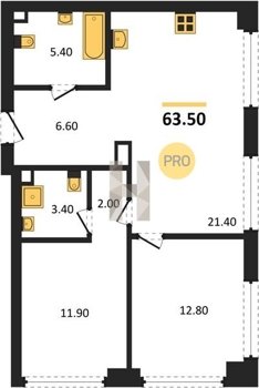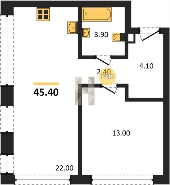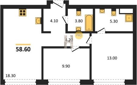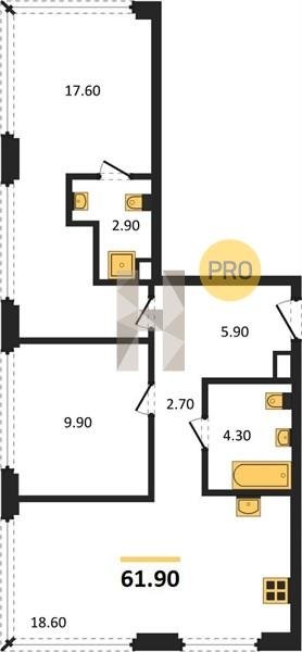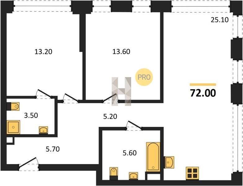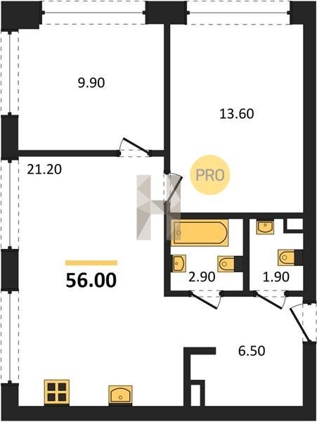 Площадь от 52.5 м2