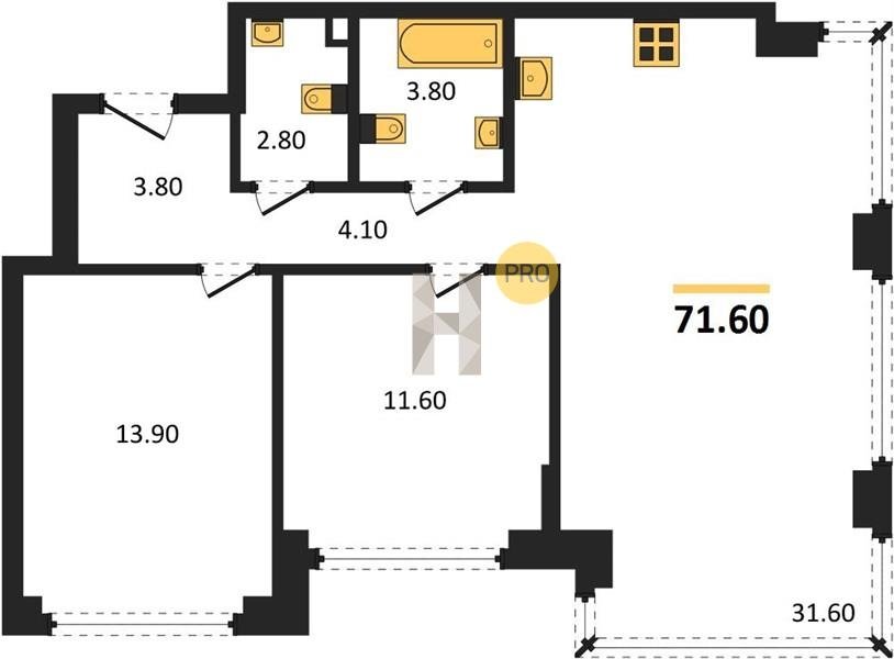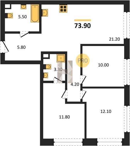 Площадь от 73.9 м2