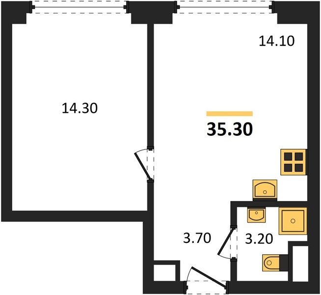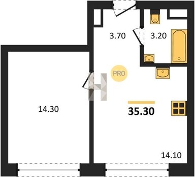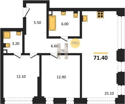Площадь от 25.3 м2