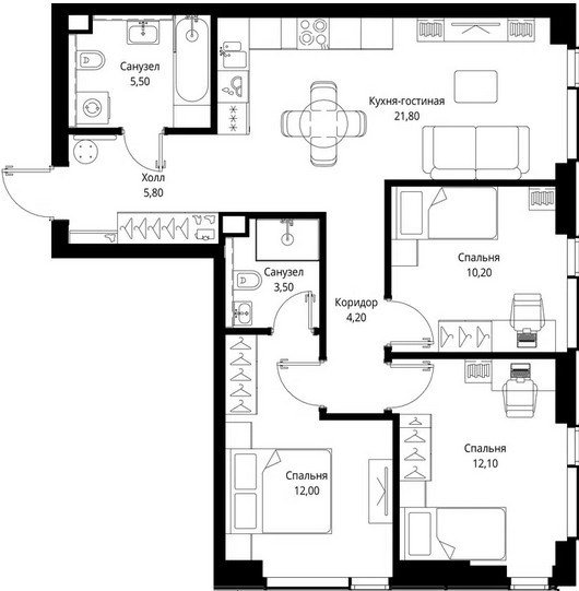 3 комнатная